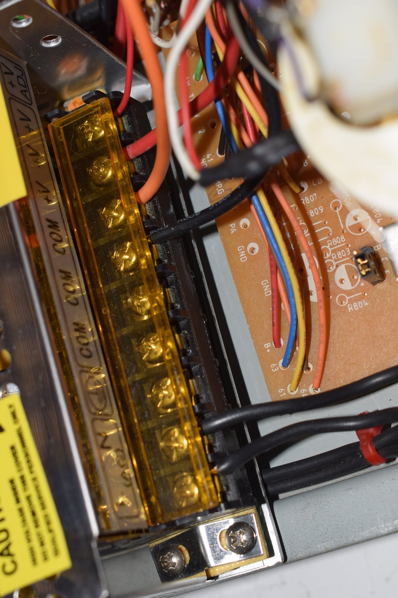 Appareil allumé avec l’alimentation d’origineÉnergie consommée appareil éteint avec l’alimentation d’origine !!!Énergie consommée en réception avec l’alimentation d’origineÉnergie consommée en émission faible puissance avec l’alimentation d’origineÉnergie consommée en émission forte puissance avec l’alimentation d’origineDémontage de l’alimentation d’origine (Transformateur + pont de diodes + condensateur de filtrage + transistor de puissance)Suppression aussi du filtrage secteur car déjà présent dans la nouvelle alimentationL’alimentation à découpage est équipée d’un ajustement de tension, je la monte à 13,8 VoltL’interrupteur d’origine est bipolaire et accepte les tensions jusqu’à 250V, ça tombe bien, je l’ai placé en amont de l’alimentationMaintenant la consommation d’énergie appareil éteint est de 0 WattAppareil allumé, en réception avec l’alimentation à découpageAppareil en émission faible puissance avec l’alimentation à découpageAppareil en émission forte puissance avec l’alimentation à découpageJ’ai conservé cette platine alimentation avec le fil qui venait de l’interrupteur pour alimenter en 13,8V et repartir en 10V vers le panneau d’affichage pour le rétro éclairageAppareil en fonctionnement, comme avant mais plus économe !!! Sur cette photo le voyant M/A n’est pas allumé car pas encore relié au bornier +13,8V, c’est maintenant chose faite… Car rappelons qu’au départ il était relié à la sortie de l’interrupteur qui coupait le secondaire, ne l’oubliez pas sinon la LED va prendre 220V et elle risque de ne pas apprécier !Gros plan sur le bornier, avec les fils (de gauche à droite) de Phase, Neutre, Masse, platine +10V, +13,8V alimentation principale du TRX et enfin alimentation du fréquencemètreBornier sous un autre angle avec protectionSchéma de la platine générant le +10V pour le rétro-éclairage de l’affichage, j’ai donc conservé la partie après l’interrupteur que j’ai relié au +13,8VType d’alimentation choisie